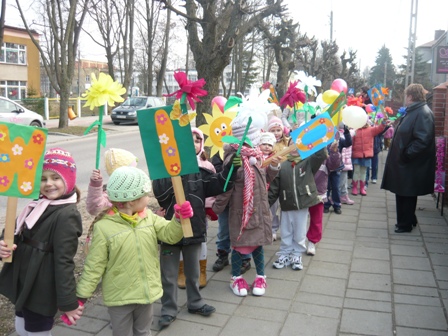 31 marca 2011 wszystkie grupy z naszego przedszkola powitały WIOSNĘ kwiatami .