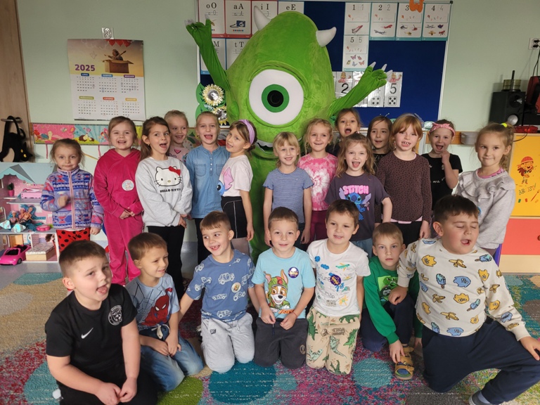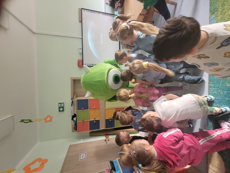 Maczki- Wizyta Figlostworka- nagroda w konkursie plastycznym "Nasza grupa w świecie magii"