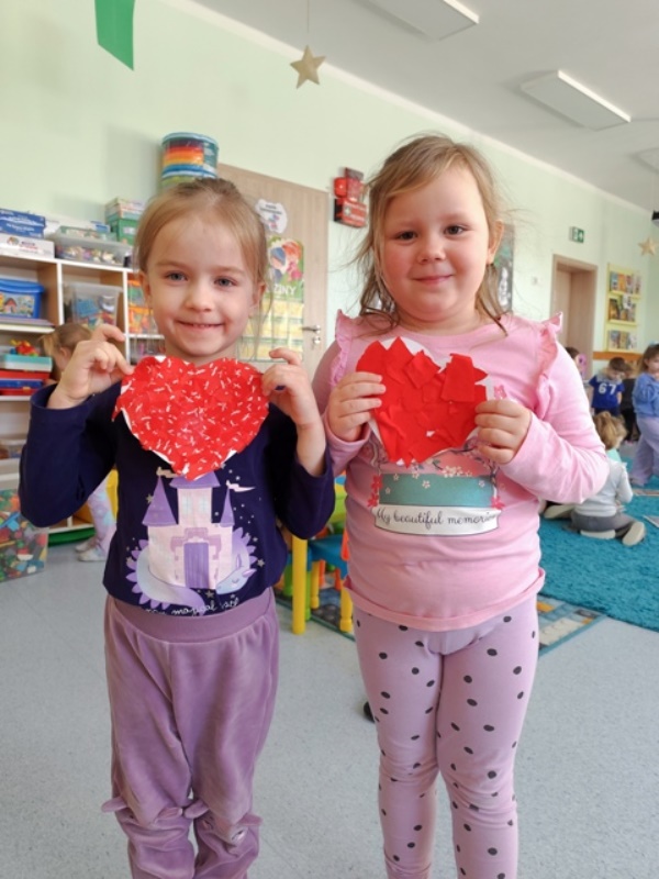 Przedszkolaki z zaangażowaniem wykonywały swoje pracy, dbając o staranne wykończenie serduszek
