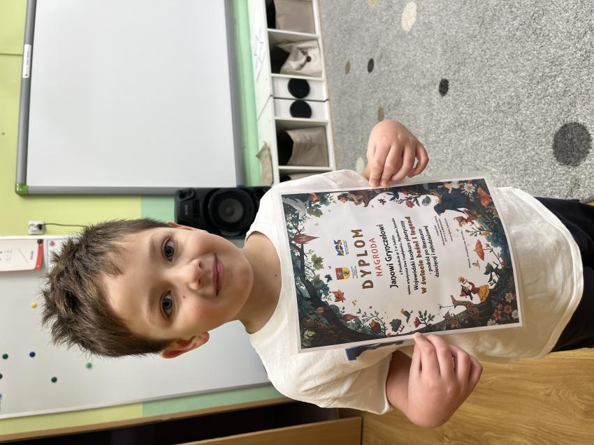Tulipany- Jaś nagrodzony w Wojewódzkim konkursie plastycznym "W świecie baśni i legend"